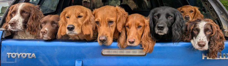 We currently have ten dogs, a mixture of spaniels, retrievers and crossbreeds who range in age from six months to thirteen years old. Our dogs live indoors as part of our family. They come on holiday with us, staying in hotels and holiday cottages and visiting cafes and pubs - and yes, they sleep on the bed! We also have a cat who is small but mighty & can often be found in pole position in front of the log burner on winter evenings.